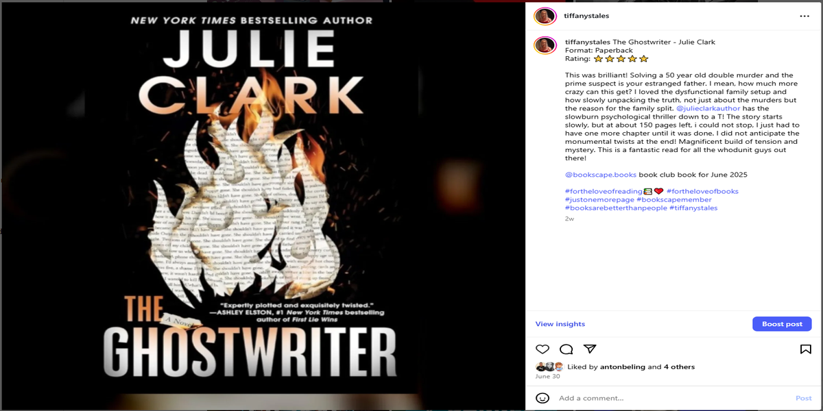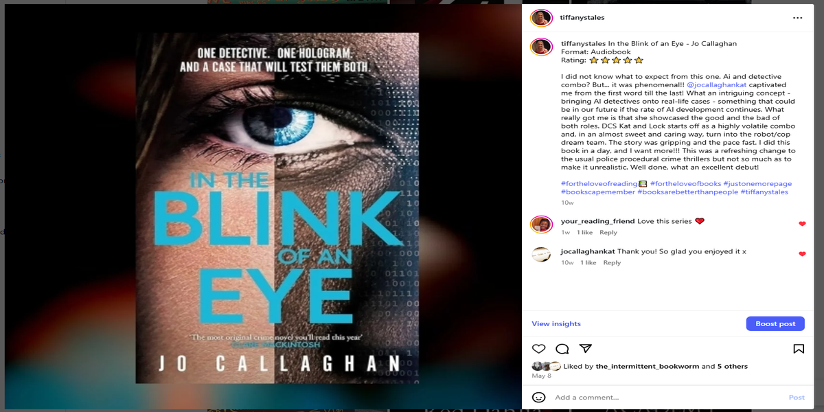 I post reviews on every book that I read. Visit my instagram page @tiffanystales to see.